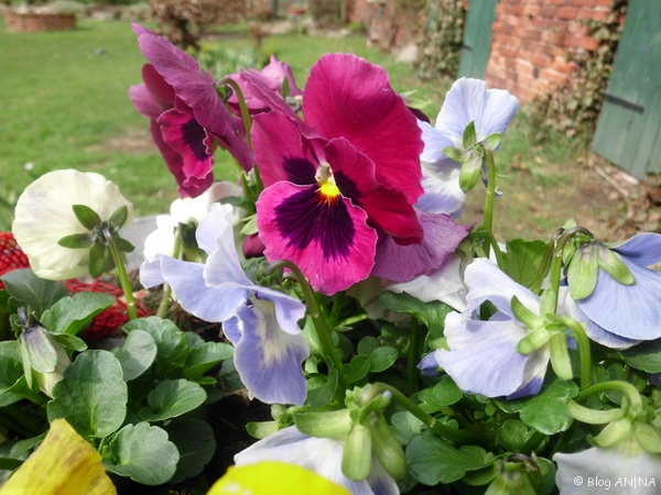 Nachdem wir nun in der letzten Woche unsere neu gekauften Stiefmütterchen nicht nach draußen pflanzen konnten, hat sich ja das Wetter in den vergangenen Tagen doch wesentlich gebessert. Es sind zwar noch immer leichte Nachtfröste, aber wir haben uns entschlossen, die Blumen jetzt auf den geschützten Hof zu bringen.